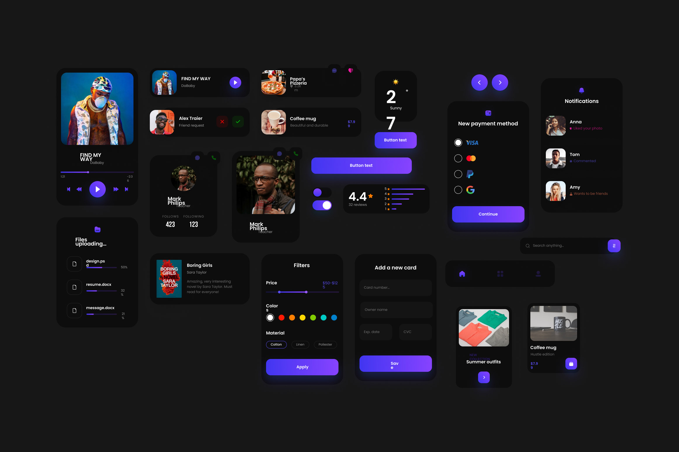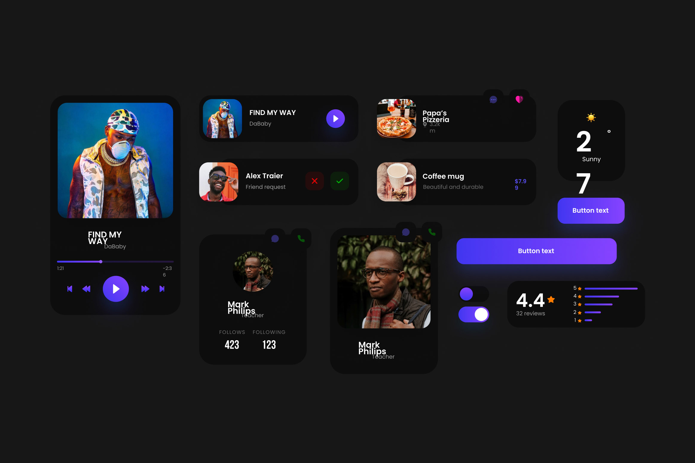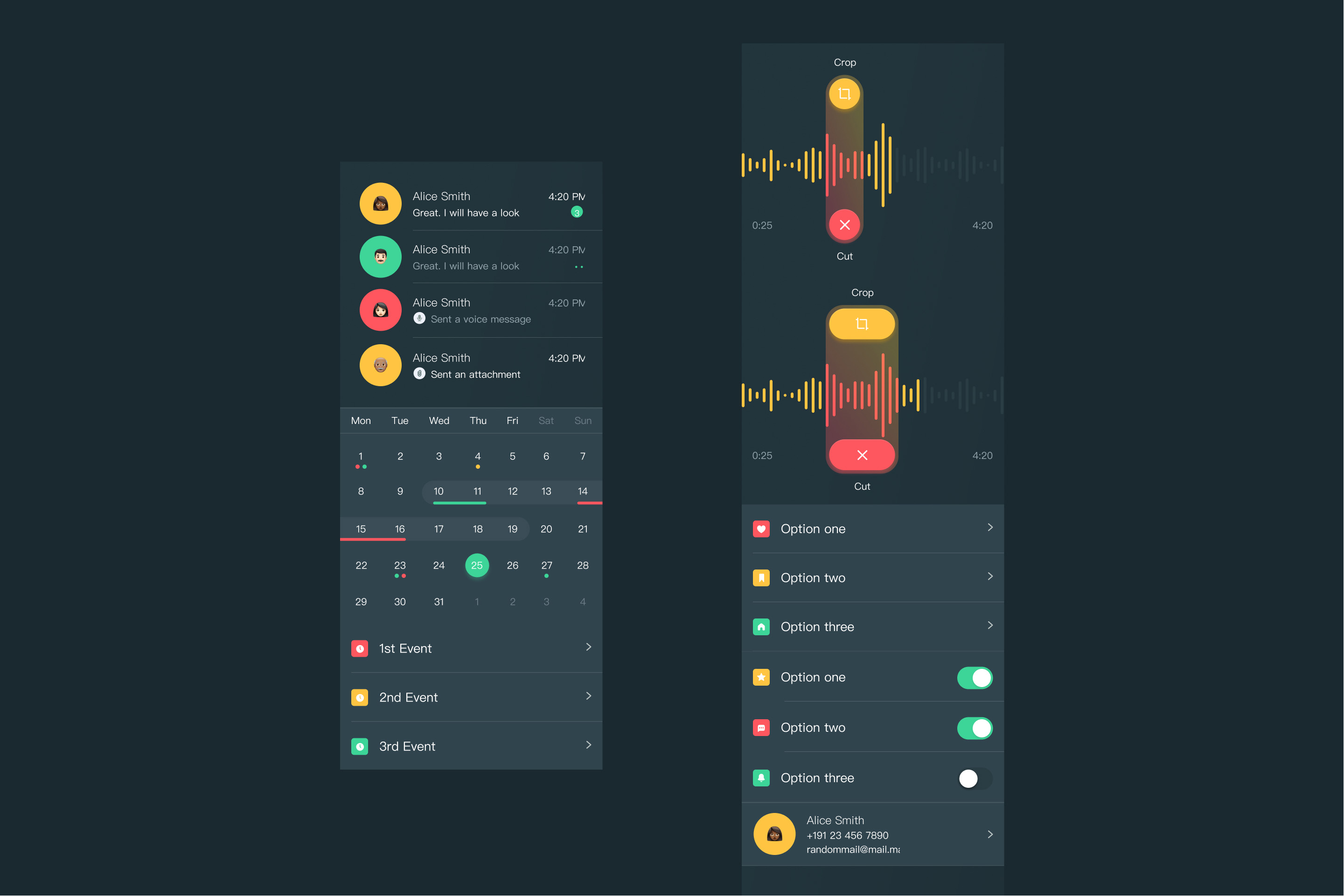 为了避免眼睛疲劳和光晕,我们把文本的颜色调暗,所以彩色元素和按钮可能会显得太亮了。必须调整这些颜色,以更好地适应深色的主题。为黑暗的主题创造更深的颜色:保持色调,降低亮度,增加饱和度。